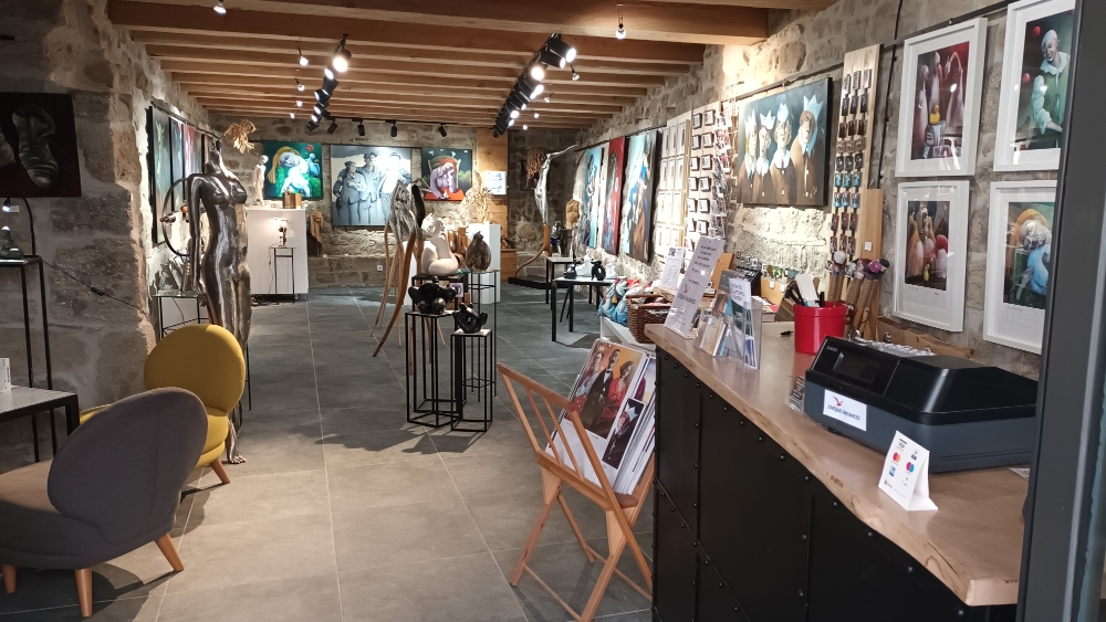 Galerie de peintures , sculptures, où sont exposés les œuvres de Marie-Noëlle Lapouge artiste peintre de Lozère, mais aussi des sculpteurs d'horizon différents .