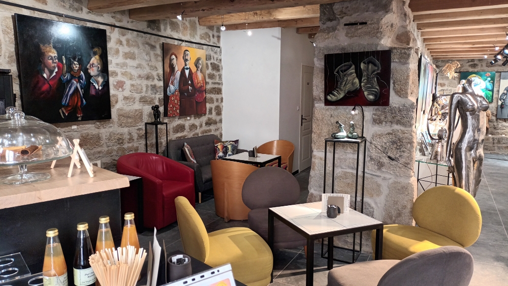 C'est confortablement installé dans le salon de thé de la galerie que vous pourrez également déguster des boissons au label bio ainsi que des glaces au lait de brebis.