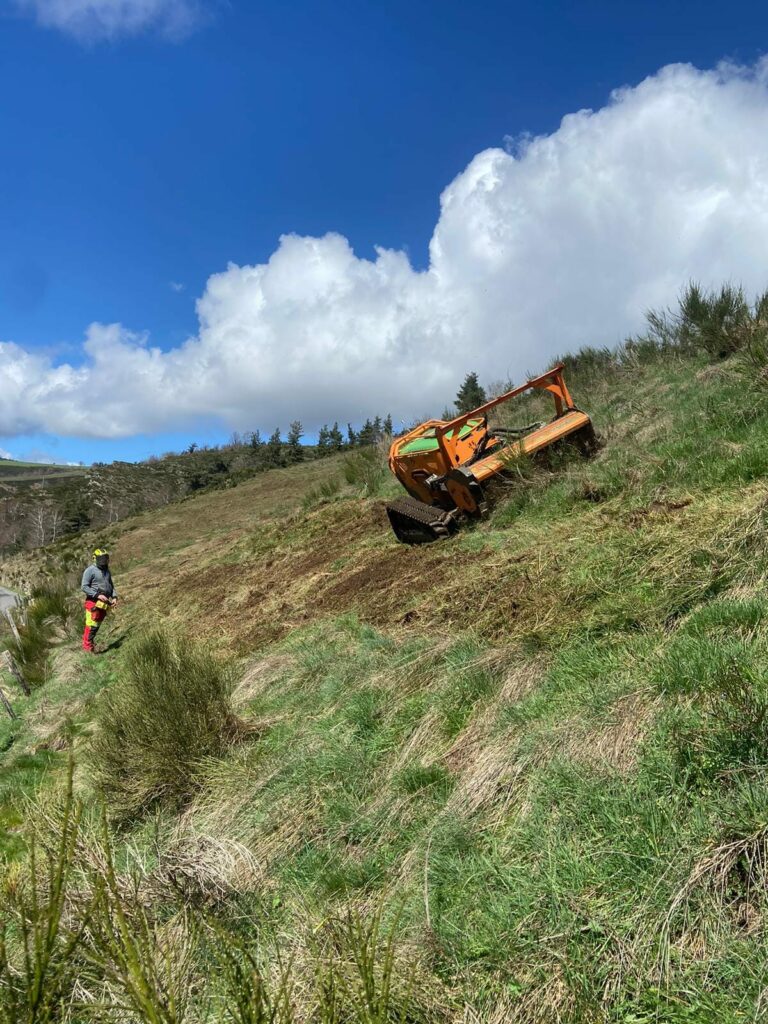 Broyage forestier avec broyeur télécommandé, débroussaillage manuel, élagage, abatage, OLD.