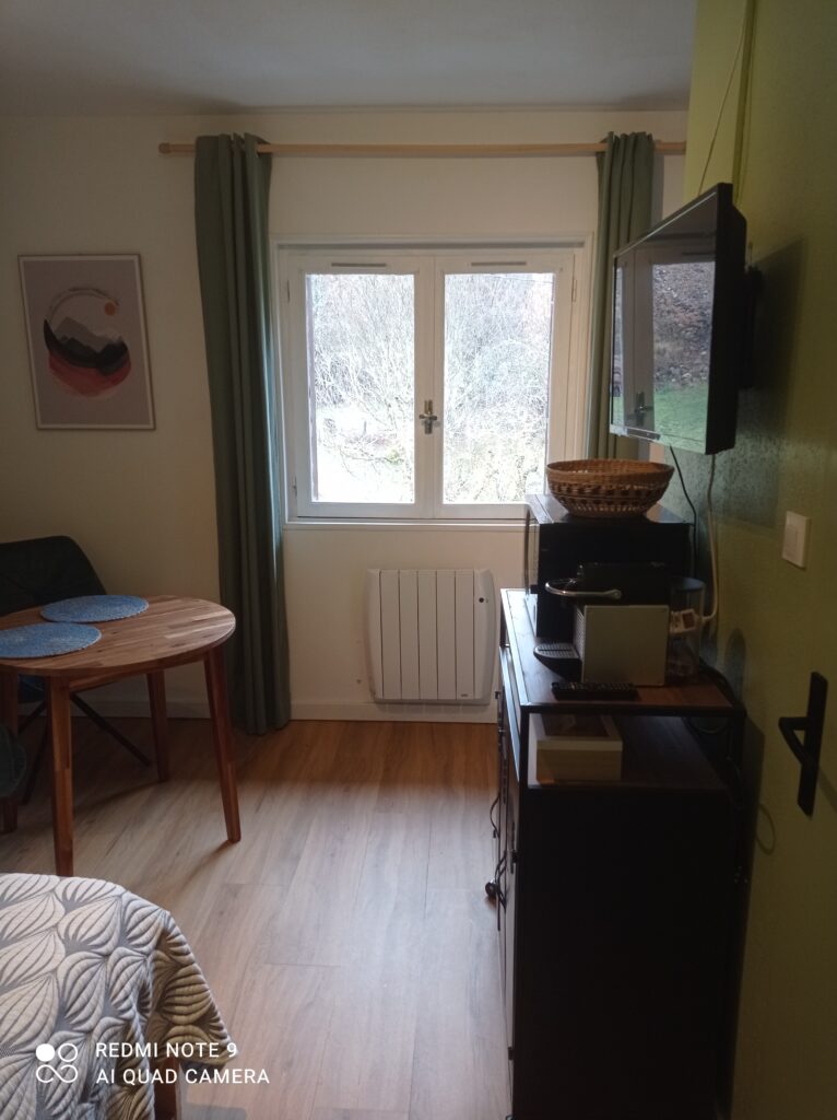 Charmant studio rénové. Station thermale accessible à pieds. Le logement est situé au 2ème étage facilement accessible de la résidence les Clauzels. Parking gratuit. Jardin et barbecue communs aux résidents. Le logement est équipé d'une literie récente (140X 200) draps non fournis , plaques vitrocéramique, micro-onde, cafetière, grill pain, machine à laver... Salle d'eau avec WC et douche. Commerces à proximité ( épicerie, pharmacie, bar, poste... ) Nombreux sentiers de randonnée, pêche et visites aux alentours. Animaux acceptés. N'hésitez pas à me contacter pour plus d'informations et disponibilités. Location 200€ CC la semaine, forfait cure 3 semaines à partir de 490€ CC hors taxe de séjour.