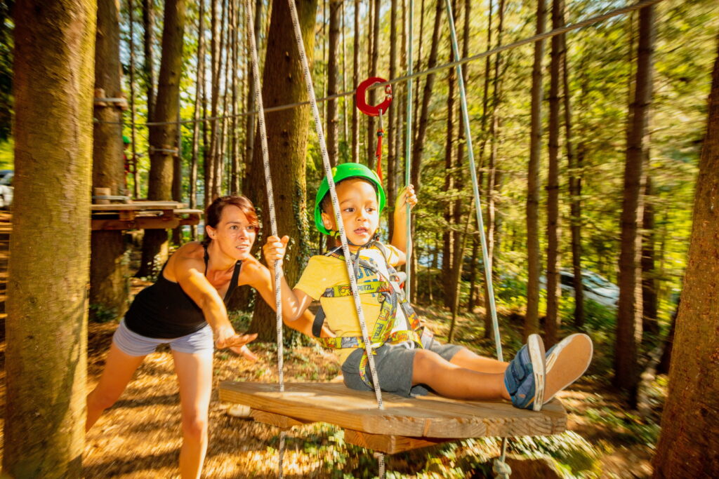Venez vous amuser sur nos 4 parcours en bordure du lac à l'ombre des pins. Parcours enfant à partir de 3 ans suivant la ligne de vie continue (sécurité maximum). 3 parcours plus aériens allant jusqu'à 12 mètres pour les plus grands.