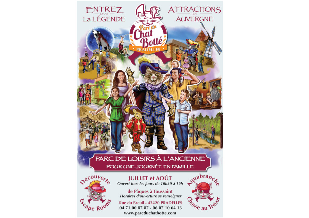 Le parc du Chat Botté vous replonge dans les années 1900, une époque où les traditions, les légendes, les mythes, les métiers et le savoir faire d’Antan composent tout un art de vivre. C’est un site incontournable en Auvergne. C’est le lieu où l’imaginaire mêle le réel et l’irréel dans de fabuleux décors de cinéma à travers une vingtaine d'attractions.