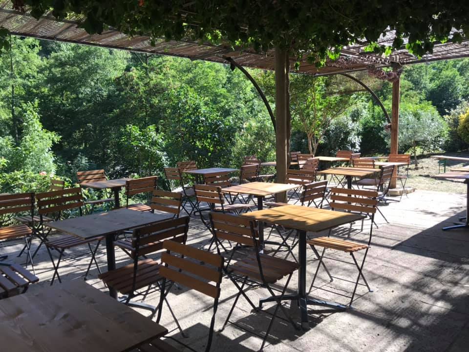 Terrasse ombragée. Cuisine maison travaillée à base de produits locaux.